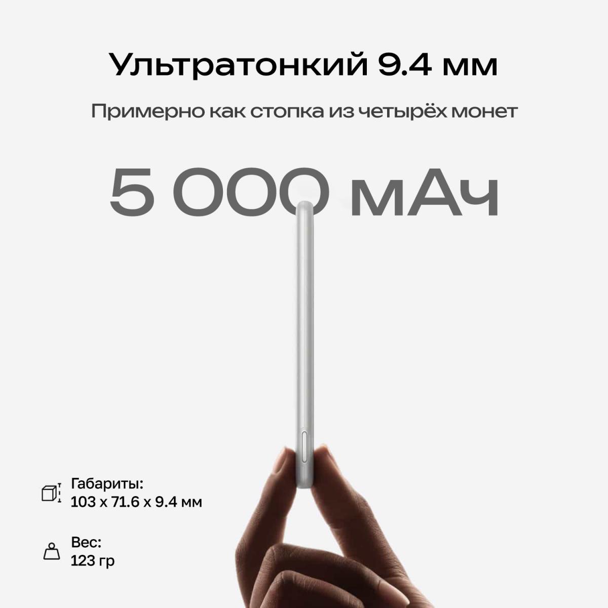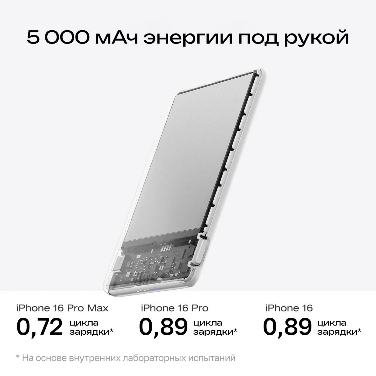 - 5 000 мАч всегда под рукой iPhone 16 заряжает на 50% всего за 36 минут