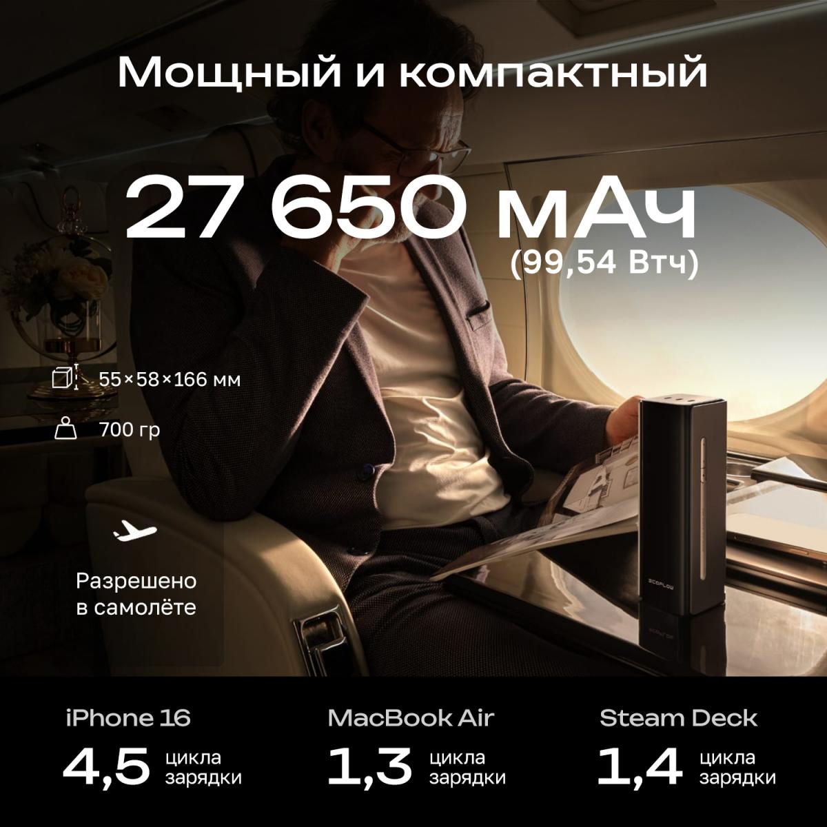 • Компактный размер, мощная производительность аккумулятор 27 650 мАч (99,54 Втч)